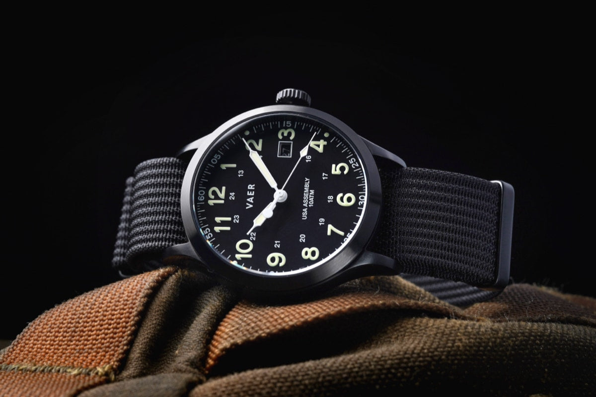 SUMMARY: This is the Ameriquartz-powered version of our top-selling C5 Tactical Field Solar. Why have we used Ameriquartz? If you’ve been following Vaer for a few years, you’ll probably recognize the term Ameriquartz. Between 2020 and 2023, we sold over ten thousand Ameriquartz watches across the C3 and C5 lineup. In 2024 year we transitioned the core of our USA-assembled quartz models (ex. C5 Tactical) to solar movements. However, we always intended to keep the option of a USA-built movement alive within the Vaer lineup. The C5 Tactical is a military-inspired 10ATM watch, that stands out in the Vaer line-up thanks to its "blacked-out" aesthetic and extremely impressive lume paint performance. As a C5 model, this watch is part of our all-time bestselling collection, distinguished by its ocean-ready functionality, low-profile case design, ultra-accurate quartz movement, and full USA assembly.