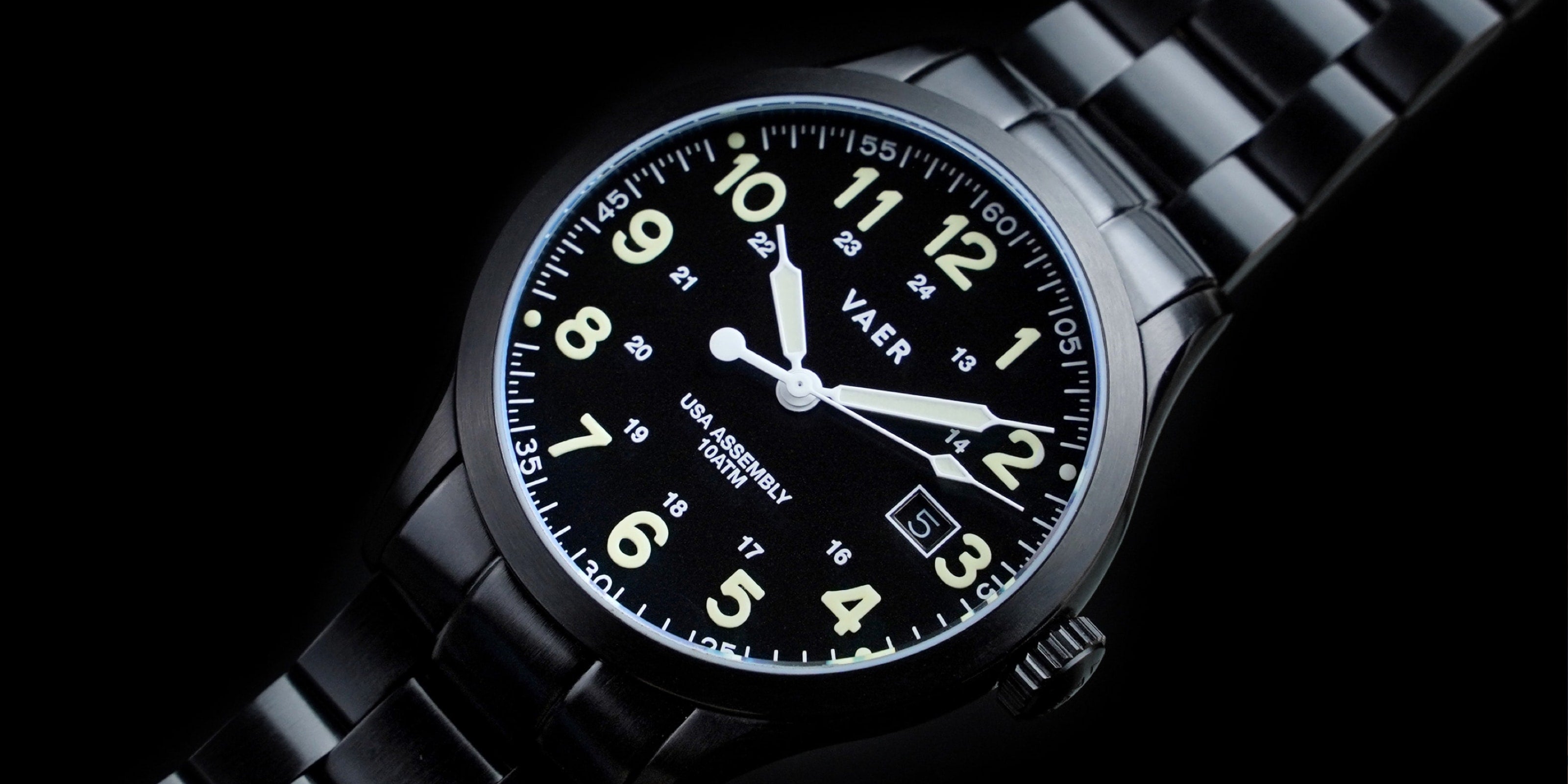 SUMMARY: This is the Ameriquartz-powered version of our top-selling C5 Tactical Field Solar. Why have we used Ameriquartz? If you’ve been following Vaer for a few years, you’ll probably recognize the term Ameriquartz. Between 2020 and 2023, we sold over ten thousand Ameriquartz watches across the C3 and C5 lineup. In 2024 year we transitioned the core of our USA-assembled quartz models (ex. C5 Tactical) to solar movements. However, we always intended to keep the option of a USA-built movement alive within the Vaer lineup. The C5 Tactical is a military-inspired 10ATM watch, that stands out in the Vaer line-up thanks to its "blacked-out" aesthetic and extremely impressive lume paint performance. As a C5 model, this watch is part of our all-time bestselling collection, distinguished by its ocean-ready functionality, low-profile case design, ultra-accurate quartz movement, and full USA assembly.