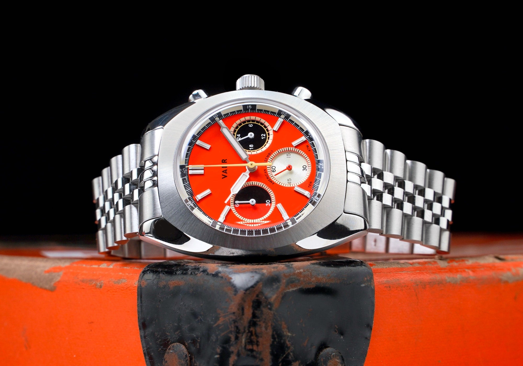 Inspired by the design, spirit, and durability of the iconic racing watches of the 1960s and 1970s, our new R1 Racing Chronograph is an all-purpose mecaquartz timekeeper blending the aesthetics and functionality of a modern chrono with the durability, water resistance, and everyday practicality synonymous with our brand.