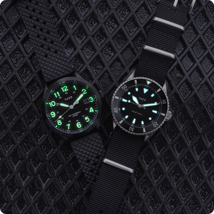 We love lume at Vaer, in fact, we’re sort of obsessed with it. Below you'll find a breakdown of all of our favorite Swiss SuperLuminova compounds.