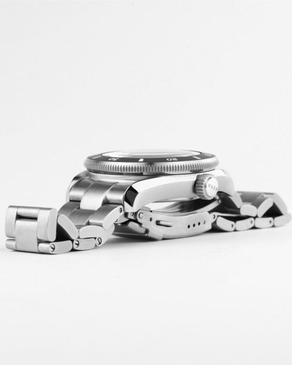The Vaer DS2 Diver is our most affordable dive watch, combining classic tool-watch design with 150 meters of water resistance, a screw-down crown—all in a compact, adventure-ready package.