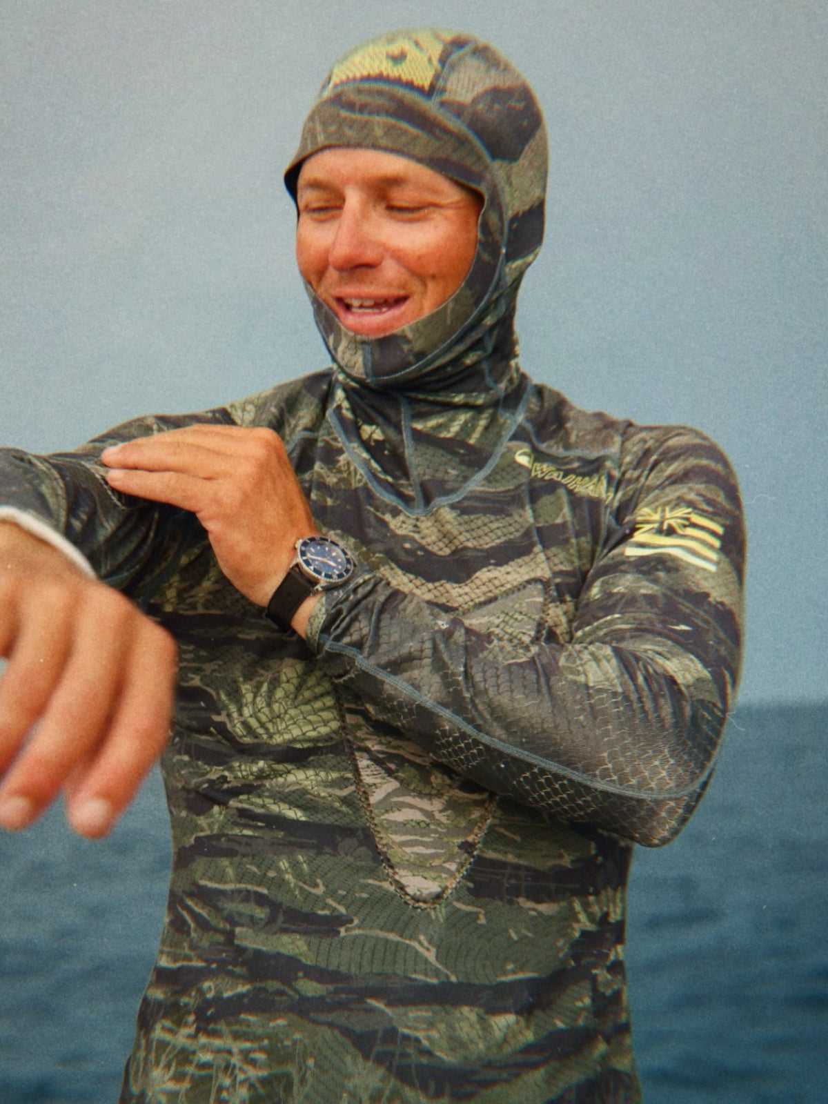 When you spend your life in the water, your gear has to hold up. Tony’s watch isn’t for show—it’s a tool, just like his spear, his fins, and the knife on his belt. It’s been with him on deep dives, long days in the sun, and through currents strong enough to knock a man off his line. It takes a beating, gets rinsed off, and does it all over again the next day. In spearfishing, timing is everything—knowing how long you’ve been under, when the tides are shifting, how much daylight you’ve got left. That’s why Tony wears a Vaer. It’s tough, simple, and built for the kind of work where failure isn’t an option.