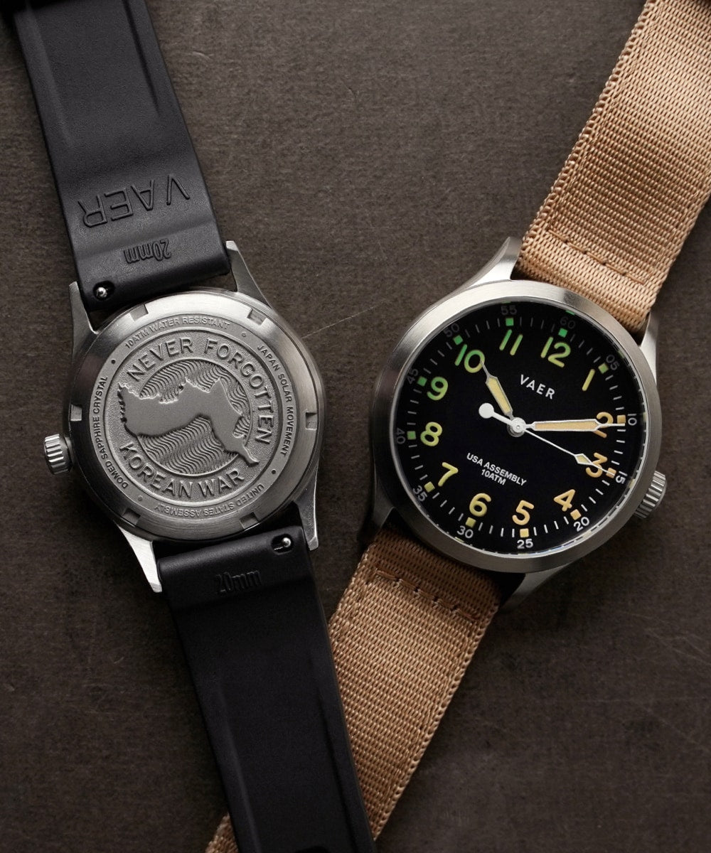 "Unlike the service watches of WW2, which have a range of modern interpretations and homages, the timepieces of the Korean War have largely been forgotten. We built the Korean Field to help remedy this imbalance, and serve as a reminder of the service and sacrifice of the allied forces in this conflict. Unlike most military homage pieces, the Korean Field is functional and affordable thanks to its USA-built solar-quartz movement."