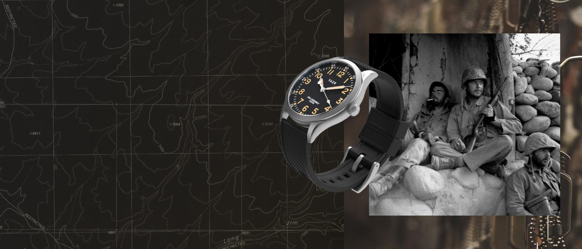 Vaer watches are rooted in the legacy of history’s most iconic military timepieces—watches that were built to endure the frontlines, navigate the seas, and withstand the toughest conditions. From classic field watches designed for precision in the trenches to dive watches trusted by naval forces, we draw inspiration from designs that have proven themselves in service.