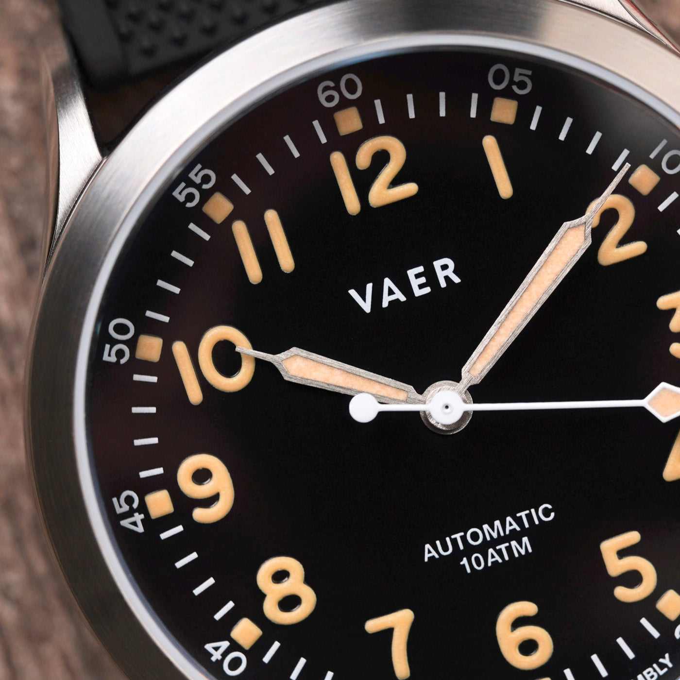 The Vaer A3 Korean Field watch pays tribute to the rugged military timepieces of the 1950s worn by Allied soldiers during the Korean War. Carrying the proportions and design language of a vintage classic, this USA-assembled field watch is infused with modern durability features, making it the ultimate daily wearer for any occasion or environment.