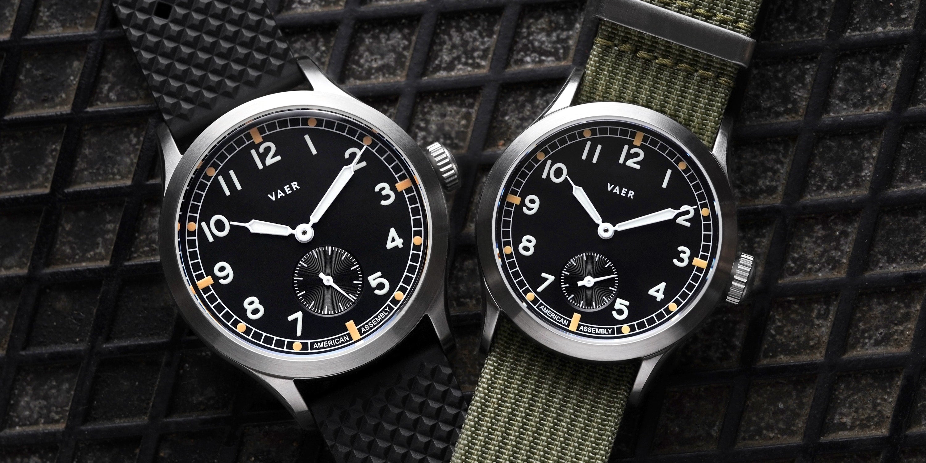 SUMMARY: This is the new Ameriquartz-powered version of our military-inspired A12 Dirty Dozen field watch, which was first introduced into the Vaer lineup in 2019. Why have we transitioned to Ameriquartz? If you’ve been following Vaer for a few years, you’ll probably recognize the term Ameriquartz. Between 2020 and 2023, we sold over ten thousand Ameriquartz watches across the C3 and C5 lineup. Last year we transitioned the core of our USA-assembled quartz models (ex. C5 Tactical) to solar movements. However, we always intended to keep the option of a USA-built movement alive within the Vaer lineup. We believe the C3/C5 Dirty Dozen is the perfect design to re-introduce this unique movement option into the Vaer lineup. While it is a quartz watch, and it’s not Swiss, in our opinion, by leveraging hand-built Ameriquartz movements, the C3/C5 Dirty Dozen represent a continuation of the historical craftsmanship of the original World War II models.