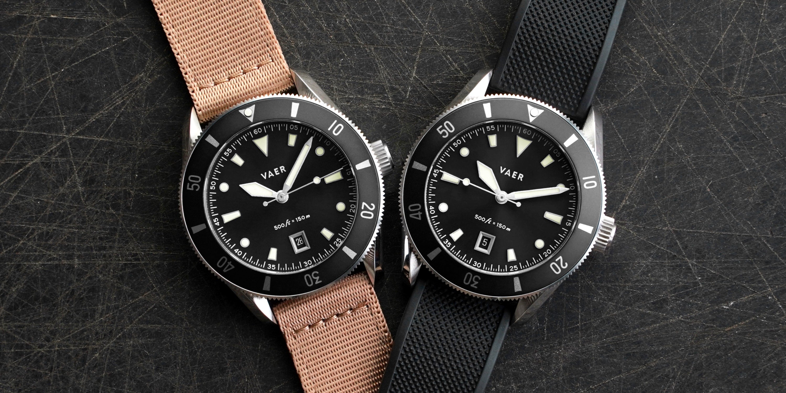 Every day is different. And the easiest way to switch up the look (and functionality) of your watch is to change straps. That's why every Vaer watch ships with 2x quick-change strap options.