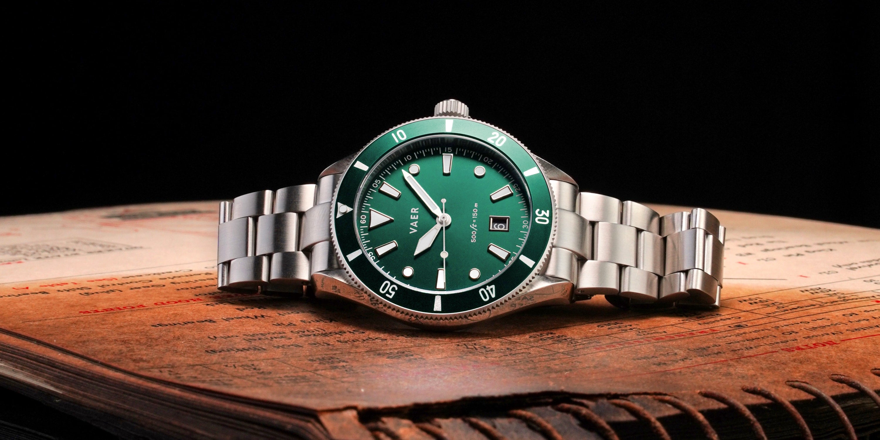 INSPIRATION: In designing the DS2 Meridian our goal was to pay homage to the history of military dive watches while also further establishing a distinct and modern Vaer aesthetic. This watch's dial design and bezel are inspired by Rolex and Doxa military divers from the 1970s - and the case is inspired by the military issue Omega Seamaster.