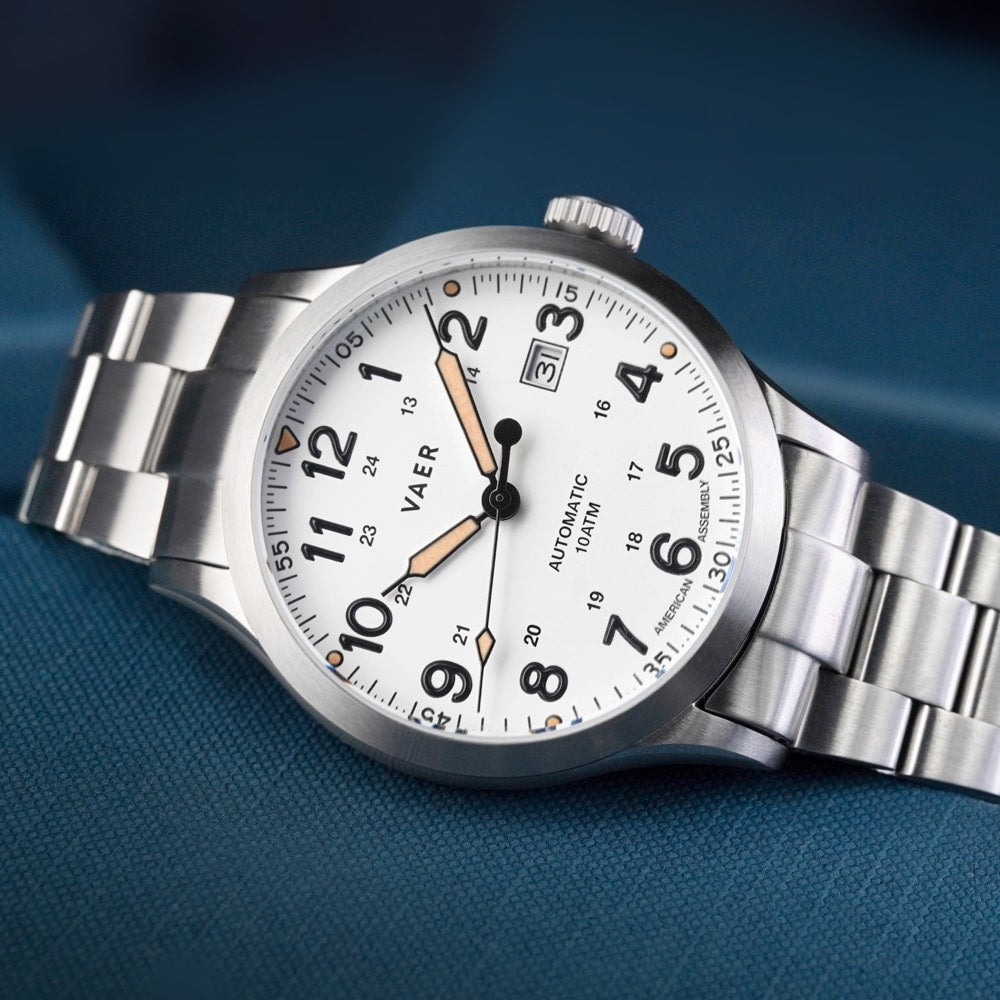 Many Vaer watches are proudly assembled in the USA. While no modern wristwatch can claim to be 100% Made in the USA, we are deeply committed to supporting American craftsmanship and maximizing domestic sourcing wherever possible.