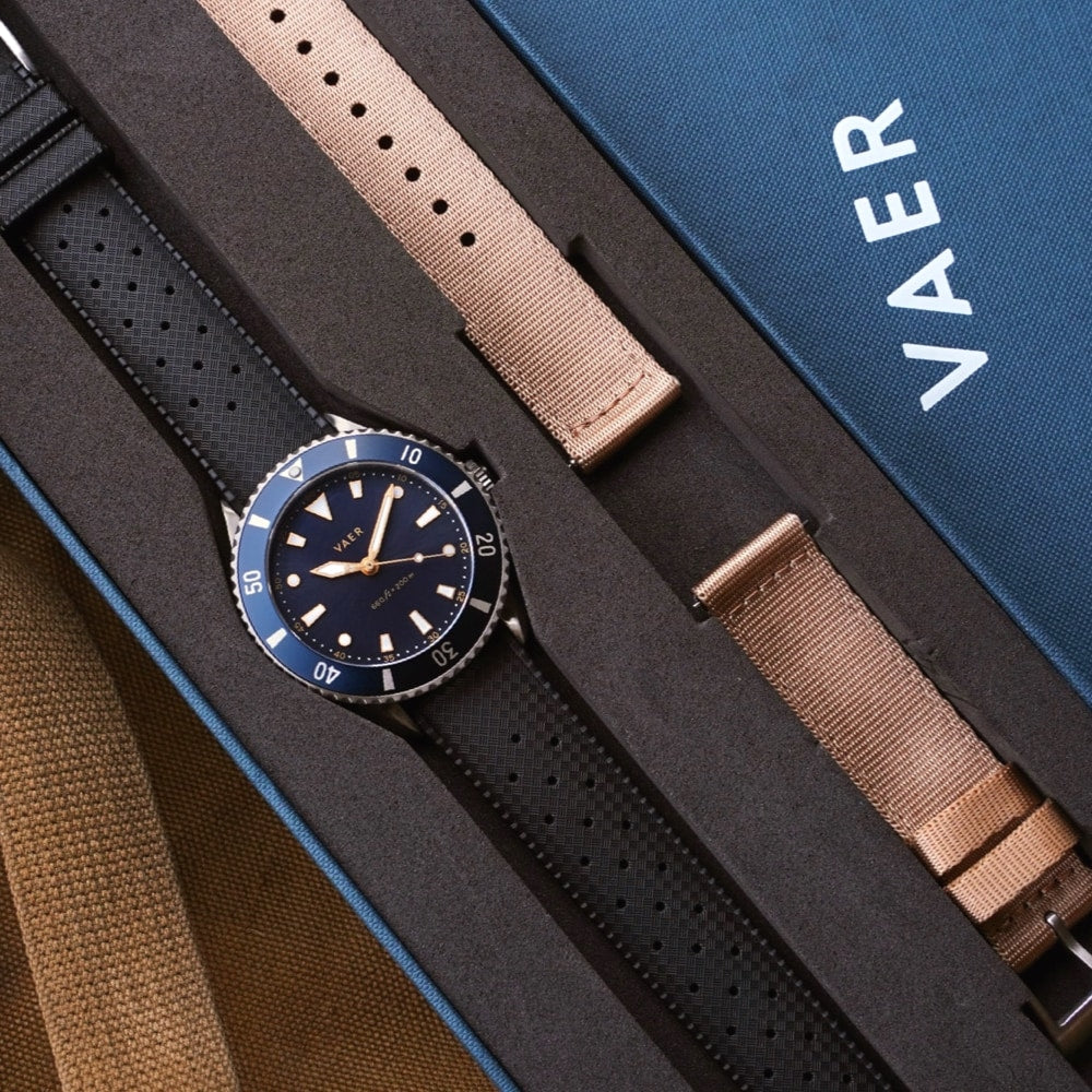 Every watch we've ever sold has come standard with two interchangeable 20mm Vaer straps. This cross-compatibility across our entire product line, gives owners increased functionality and value, with the option to easily change up their strap.